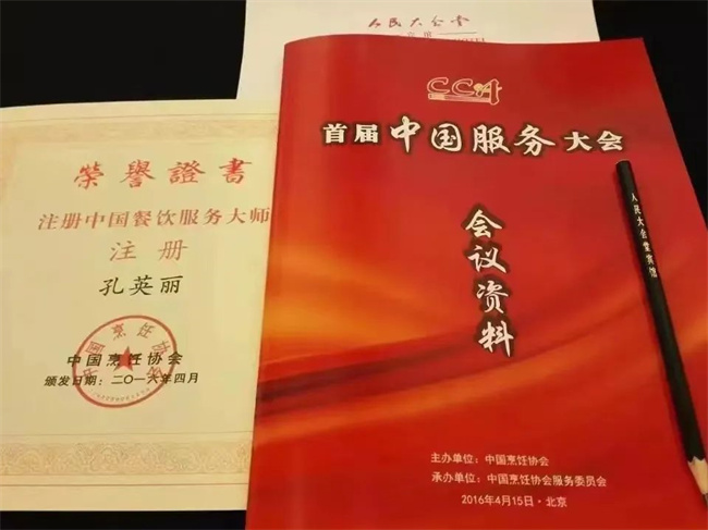 功夫不負有心人,憑借深厚理論知識和高超技藝,孔英麗于2007年獲評高級技師,并于2016年獲評國家第一批注冊餐飲服務(wù)大師榮譽稱號,當年她還參加了在人民大會堂舉行的授勛儀式,那身紅色的職業(yè)裝成為此生最難忘的紀念。