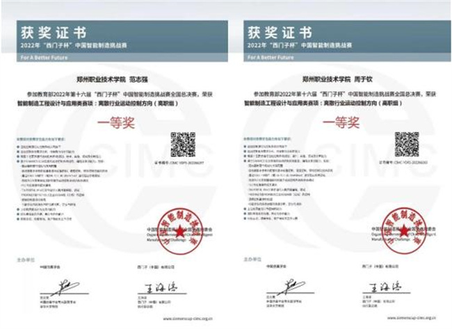 據(jù)了解,在9月29日,由教育部國(guó)際合作與交流司指導(dǎo),中國(guó)仿真學(xué)會(huì)、西門(mén)子(中國(guó))有限公司聯(lián)合主辦的教育部2022年第十六屆CIMC“西門(mén)子杯”中國(guó)智能制造挑戰(zhàn)賽全國(guó)總決賽落下帷幕。由鄭州職業(yè)技術(shù)學(xué)院智能制造學(xué)院姬耀鋒、盧青波聯(lián)合指導(dǎo),學(xué)生周于欽、范志強(qiáng)組成的“森宇”團(tuán)隊(duì),充分發(fā)揚(yáng)勇于拼搏的奮斗精神,精心準(zhǔn)備,科學(xué)訓(xùn)練,歷時(shí)三個(gè)月的艱辛備賽,最終不畏強(qiáng)手、沉著應(yīng)戰(zhàn),憑借扎實(shí)的專(zhuān)業(yè)技能和良好的職業(yè)素養(yǎng),勇奪“離散行業(yè)運(yùn)動(dòng)控制方向”賽項(xiàng)全國(guó)總決賽一等獎(jiǎng)。