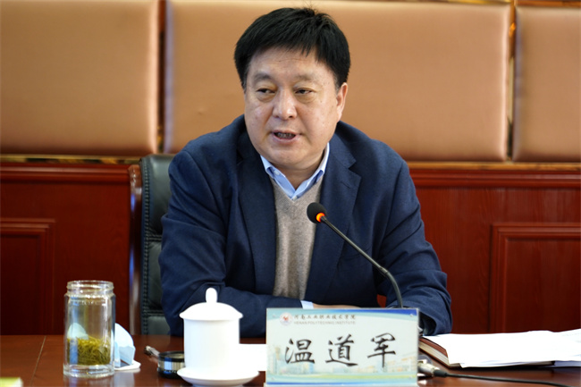 溫道軍就進一步深入學習宣傳貫徹黨的二十大精神提出四點要求,一是要提高政治站位,深刻領會精神內涵。要深刻領會新時代新征程中國共產黨的使命任務、中國式現(xiàn)代化的中國特色和本質要求、統(tǒng)籌推進“五位一體”的總體布局、教育科技人才、法治建設、國家安全等方面的重大部署,牢牢把握習近平新時代中國特色社會主義思想的世界觀和方法論。二是要堅持學深悟透,深化宣傳引導。全校上下要把學習貫徹黨的二十大精神作為當前和今后一個時期的首要政治任務,迅速掀起學習、領會、貫徹黨的二十大精神的熱潮。要分類分層做好學習宣傳貫徹,形成領導干部帶頭領學、專家講師進校促學、青年學生踴躍互學的濃厚氛圍,做到學習宣傳貫徹全覆蓋。三是要堅持學用結合,全面落實落細。要堅持聯(lián)系實際學,將學習黨的二十大精神與落實學校“十四五”發(fā)展規(guī)劃結合起來,與當前疫情防控和安全穩(wěn)定工作結合起來,把黨的二十大作出的重大決策部署付諸于行動、見之于成效,把學習成果轉化為推動學校事業(yè)高質量發(fā)展的強大動力和實際舉措。四是要堅持黨的領導,加強黨的建設。要以貫徹落實黨的二十大精神為主線,堅定不移把黨的全面領導落到實處,加強正風肅紀,堅定不移推動全面從嚴治黨向縱深發(fā)展,不流于形式、不做表面文章,為辦好人民滿意的職業(yè)教育貢獻工院力量。