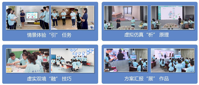 典型案例的入選,是學校大力推進“雙高校”建設的工作亮點,也是學校探索高職復合型BIM人才“四元融通”綜合育人模式的創(chuàng)新實踐。BIM簡稱建筑信息模型,是建筑的數(shù)字化模型集成應用,具有全程可視、在線協(xié)同、虛實結合等優(yōu)點,2003年開始在全國應用并引發(fā)建筑產業(yè)革命,2019年建筑信息模型技術員成為首批新職業(yè),BIM證書成為首個“1+X”項目。國家大力推進建筑產業(yè)數(shù)字化升級,既需要大量傳統(tǒng)建筑崗位應用BIM實現(xiàn)技術升級(+BIM),又需要大批的專門BIM崗位增值賦能(BIM+),著力培養(yǎng)一批“基礎扎實、一專多能、素質優(yōu)良”的復合型BIM人才,迫在眉睫。學校依托建筑工程施工全過程虛擬仿真實訓基地,賦能建筑工程技術專業(yè)群培養(yǎng)高質量復合型BIM人才,完善“崗課賽證”綜合育人機制,開發(fā)模塊化、系統(tǒng)化的實訓課程體系。以人為本能力建構,崗課賽證“四元融通”,構建“三層三擋、四元融通”模塊化課程體系,開發(fā)“能力重塑、四元融通”模塊化課程,實施“虛實結合、四元融通”模塊化教學。