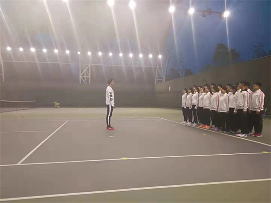 夜色如墨,寒意漸濃,學(xué)校網(wǎng)球場仍一片熱鬧景象,向云平老師正帶領(lǐng)隊員們加訓(xùn)。“在你最困難的時候,唯一要做的就是再堅持一下。不管摔倒了多少次,希望同學(xué)們不要失去站起來的勇氣。”向老師鏗鏘有力、擲地有聲的話語點燃了在場每一位運動健兒的激情。