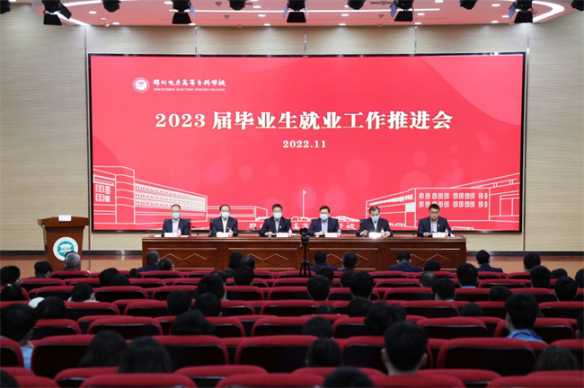 中新河南網(wǎng)11月26日電(李安杰) 為深入學習貫徹黨的二十大精神,傳達落實2023屆全國普通高校畢業(yè)生就業(yè)創(chuàng)業(yè)工作網(wǎng)絡視頻會議要求,11月23日,鄭州電力高等?茖W校召開2023屆畢業(yè)生就業(yè)工作推進會,總結(jié)回顧2022屆就業(yè)工作,梳理分析2023屆就業(yè)工作形勢任務,安排部署2023屆就業(yè)工作思路舉措,統(tǒng)一凝聚進一步做好2023屆就業(yè)工作的思想行動,確保2023屆畢業(yè)生更加充分更高質(zhì)量就業(yè)工作如期進行、按期推進、務期必成。鄭州電力高等?茖W校黨委書記楊義波、校長楊建華等校領導班子成員,學生處、教務處、團委等相關職能部門負責人、學院書記、院長、全體輔導員及2023屆畢業(yè)生代表參加會議,鄭州電力高等?茖W校黨委委員、副校長黃鵬主持會議。
