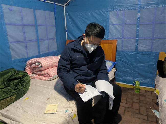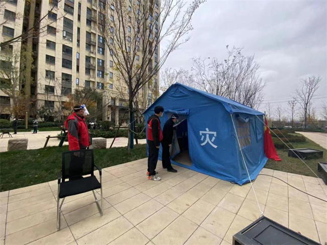 一把椅、一張床、一座帳篷、一個(gè)公示牌、一面黨旗……周圍的一切對(duì)于后勤處總務(wù)科科長(zhǎng)易健同志而言陌生而又熟悉。來(lái)到經(jīng)開(kāi)區(qū)京杭辦事處瑞之繡酒店公寓一線抗疫已經(jīng)五天了。每天24小時(shí)不間斷地巡查檢視,封控單元住戶數(shù)、人數(shù)、特殊群體等數(shù)據(jù)爛熟于心。然而,回想起幾天前在家里舒適的生活,眼前的一切又是那么陌生。