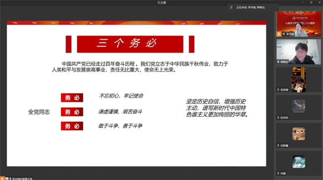 在宣講會上,各位老師從不同視角,結(jié)合各自對二十大精神的學(xué)習(xí)和理解,根據(jù)不同專業(yè)的理論基礎(chǔ),針對二十大報告的十五部分,各有側(cè)重地對黨的二十大精神作了全面、深入、細致地解讀。每個老師的講解各有特點,既有理論高度又深入淺出,既有宏觀敘事也有微觀解析,對學(xué)生們深入理解二十大精神的內(nèi)涵,精準把握二十大精神的外延,全面、準確地領(lǐng)悟二十大精神起到了良好作用。