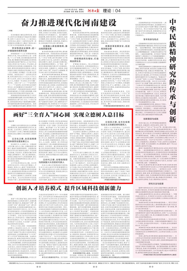 (《河南日報》理論版刊發(fā)學校黨委副書記、工會主席張小平的理論文章《畫好“三全育人”同心圓 實現(xiàn)立德樹人總目標》)