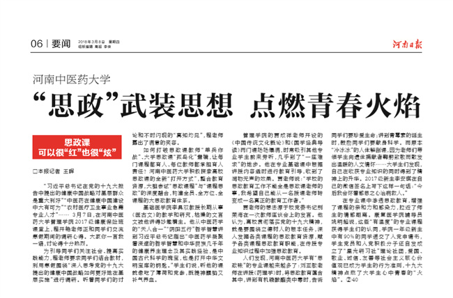 (2018年,學校成為首批河南省“三全育人”綜合改革試點高校)