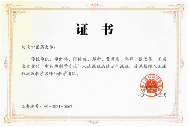 (《中藥炮制學專論》入選教育部首批課程思政示范項目)
