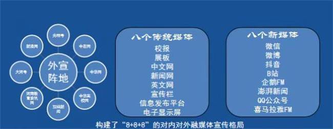 (三)加強宣傳引導,打造網(wǎng)絡育人“新高地”。學校宣傳思想工作堅持因事而化、因時而進、因勢而新,緊緊把握學生思想動向和媒體發(fā)展趨勢,促進媒體融合,不斷健全思想輿論、內(nèi)宣外宣、網(wǎng)上網(wǎng)下相貫通的育人體系。2017年設立新聞中心,與宣傳部合署辦公。2018年5月,校報記者站更名為校新媒體(校報)記者團。同年,校園網(wǎng)升級改版,建設新聞網(wǎng),一體推進“雙微”建設。在做好內(nèi)宣的同時,積極拓展外宣空間。2018年,該校微信公眾號入駐“大河網(wǎng)”“大河號”欄目;2019年,中文網(wǎng)入駐中宏網(wǎng)“出彩河南”欄目;2021年,該校正式入駐“頂端新聞”,中文網(wǎng)鏈接同時入駐中華網(wǎng)、中華高校網(wǎng)、河南高校資訊網(wǎng)3家網(wǎng)站欄目首屏頭條。精心打造 8個外宣陣地、8個傳統(tǒng)媒體平臺、8個新媒體平臺建設,構(gòu)建了“四級聯(lián)動”融媒體宣傳矩陣。官方微信粉絲達8.4萬人,官方微信發(fā)布推文3800余篇,原創(chuàng)微信推文達1000余篇;新浪官方微博粉絲近5.2萬人,發(fā)布推文近3.9萬條。微博、微信排名常年位居全國同類院校及全省本科院校前列,官方微博排名位居河南省本科院校政務微博首位,被省委教育工委、省教育廳確定為“教育新媒體工作考核優(yōu)秀單位”。2019年學校獲批“全省網(wǎng)絡文化建設試點高校”,先后斬獲“河南省教育融媒體創(chuàng)作基地”“全省高校‘融媒體+育人工作’培育單位”等多項稱號。