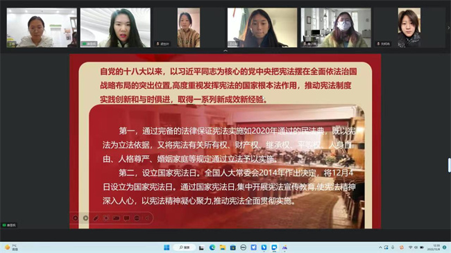 為扎實(shí)推進(jìn)憲法網(wǎng)絡(luò)學(xué)習(xí)和“憲法衛(wèi)士”行動(dòng)計(jì)劃,黨委宣傳部、團(tuán)委廣泛動(dòng)員,各學(xué)院(中心)精心部署,普法專干迅速行動(dòng),輔導(dǎo)員、班主任新建學(xué)生班級(jí)、導(dǎo)入學(xué)生信息,指導(dǎo)學(xué)生進(jìn)入教育部全國(guó)青少年普法網(wǎng)參與學(xué)習(xí)練習(xí)、綜合評(píng)價(jià)、法治實(shí)踐,并做好過程管理,實(shí)時(shí)掌握各班級(jí)完成情況和進(jìn)度,保質(zhì)保量完成學(xué)習(xí)與評(píng)價(jià)。同時(shí)各班級(jí)利用主題班會(huì)契機(jī),積極開展法治實(shí)踐活動(dòng),通過主題宣講、互動(dòng)討論、知識(shí)搶答、集體宣讀等形式使學(xué)生進(jìn)一步感受憲法文化,領(lǐng)會(huì)憲法精神。學(xué)校在普法網(wǎng)參與“憲法衛(wèi)士”2022行動(dòng)計(jì)劃學(xué)生用戶達(dá)19599人,平均得分82.96分,營(yíng)造了濃厚的“學(xué)習(xí)憲法、尊崇憲法”的校園法治文化氛圍。