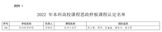 河南省教育廳關(guān)于公布河南省2022年本科高校課程思政項(xiàng)目建設(shè)名單的通知