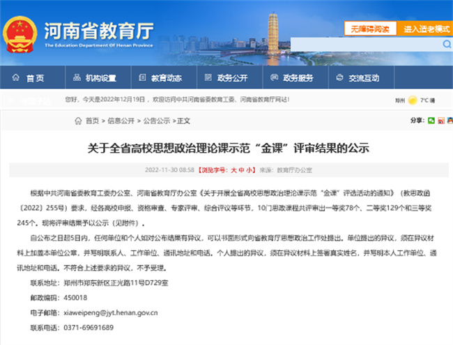 中新河南網(wǎng)12月30日電(王歡) 近日,河南省委教育工委辦公室、河南省教育廳辦公室公布2022年全省高校思想政治理論課示范“金課”活動評選結果。河南交通職業(yè)技術學院教師在活動中共榮獲一等獎1項,二等獎1項,三等獎2項。
