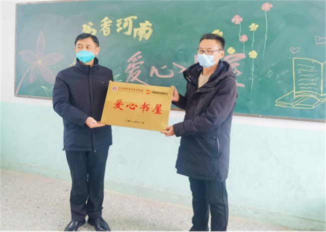 調研走訪期間,舉行了河南醫(yī)學高等?茖W校為夏邑縣何營鄉(xiāng)中心小學、郭莊農貿區(qū)郭莊小學捐建的“愛心書屋”啟用儀式,孫韜校長分別為兩所學校“愛心書屋”授牌。這次捐建的“愛心書屋”是在學校第一批捐建基礎上進行優(yōu)化,結構組成、圖書種類更合理,每所“愛心書屋”有6組書柜,并精心挑選了價值11萬余元、適合少年兒童閱讀的各類圖書3200多冊,努力滿足學校師生“多讀書、讀好書”的需求,培養(yǎng)廣泛興趣,樹立遠大理想,為孩子們健康成長打牢基礎。啟用儀式上,河南省扶貧基金會王品主任為學校頒發(fā)了捐贈證明和榮譽證書。