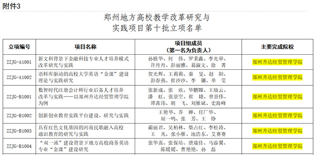鄭州升達經(jīng)貿管理學院6個項目獲批鄭州地方高校教學改革研究與實踐項目立項
