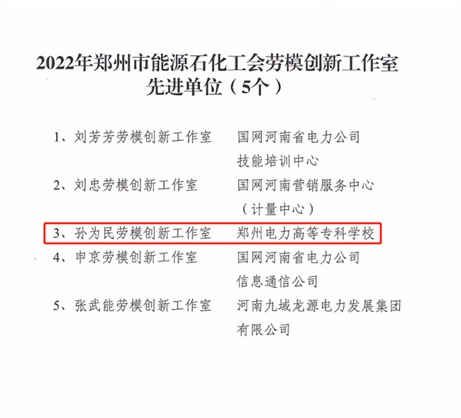 鄭州電力高等專科學(xué)!皩O為民勞模創(chuàng)新工作室”獲批“鄭州市能源石化工會(huì)先進(jìn)勞模工作