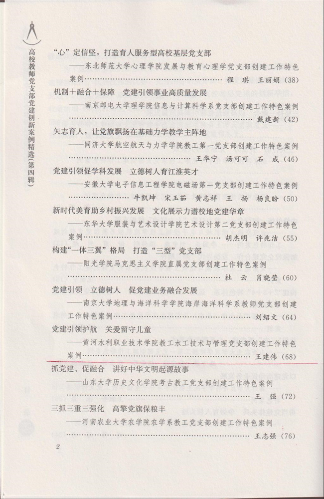 該校教工水工技術(shù)與管理黨支部以“五好黨支部”為標(biāo)準(zhǔn),深化體制機(jī)制建設(shè),推進(jìn)黨建工作與業(yè)務(wù)工作深度融合,傾心構(gòu)建了“四個(gè)二、五個(gè)一”“2+1+X”年度、月度黨建工作法,精心制定了《支部黨員學(xué)習(xí)制度》《支部黨員評(píng)先評(píng)優(yōu)管理制度》《支部活動(dòng)制度》《支部書柜圖書借閱制度》等四項(xiàng)工作制度,呈現(xiàn)出政治理論學(xué)習(xí)深入系統(tǒng)、支部特色活動(dòng)生動(dòng)持久、新聞宣傳材料及時(shí)鮮活等特色亮點(diǎn)。該支部連續(xù)四年獲評(píng)學(xué)校先進(jìn)基層黨組織,是全國(guó)高校“雙帶頭人”教師黨支部書記工作室培育創(chuàng)建單位。本次收入《案例精選》的“關(guān)愛(ài)留守兒童”特色活動(dòng),開(kāi)始于2017年9月,支部在通許縣大崗李鄉(xiāng)小崗郭村小學(xué)建立了“留守兒童愛(ài)心家園”,目前已連續(xù)6年開(kāi)展了13次愛(ài)心幫扶;顒(dòng)為孩子們送去了學(xué)習(xí)、生活用品,傳遞了黨的關(guān)懷、愛(ài)的溫暖、社會(huì)的正能量,用黨的偉大精神引領(lǐng)青少年奮進(jìn)新征程。