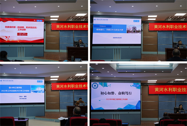 校黨委書記周保平認真聽取匯報并發(fā)表講話。她指出,這是系統(tǒng)梳理總結(jié)過去一年目標任務(wù)完成情況、精心謀劃部署新的一年發(fā)展大計的一次會議。各部門各單位要認清形勢,提高站位,牢牢把握學校發(fā)展面臨的歷史性機遇;要明確目標,理清思路,科學擘畫學校事業(yè)發(fā)展的宏偉藍圖;要踔厲奮發(fā),篤行不怠,確保學校各項工作落到實處。為此,她提出4點具體要求:一要提升政治能力。要增強政治意識,善于從政治角度看問題,善于把握政治大局,不斷提高政治判斷力、政治領(lǐng)悟力、政治執(zhí)行力。二要提升執(zhí)行能力。善于把握和解決工作中的主要矛盾,堅持問題導向、目標導向、效果導向,練就攻堅克難的工作能力,真正做到精準施策。三要提升調(diào)研能力。要踐行一線規(guī)則,深入到師生中去,善于和師生溝通,與師生建立有溫度的、實實在在的聯(lián)系,把師生中蘊藏著的智慧和力量充分激發(fā)出來,匯聚推動學校發(fā)展的強大合力。四要提升謀劃能力。要胸懷全局,看到學校發(fā)展大局,樹立全校一盤棋的思想,樹立協(xié)同發(fā)展的理念,把部門、單位融入學校發(fā)展大格局,努力做到同向同行、合作共贏。面對新形勢、新機遇,要堅定信心和底氣,堅持攻堅克難的勇氣和銳氣,心往一處想、勁往一處使,在新形勢下開創(chuàng)新局面,推動學校各項事業(yè)發(fā)展實現(xiàn)新突破、新跨越,為推動學校發(fā)展再上新臺階,實現(xiàn)歷史名校復興的“水院夢”而努力奮斗。