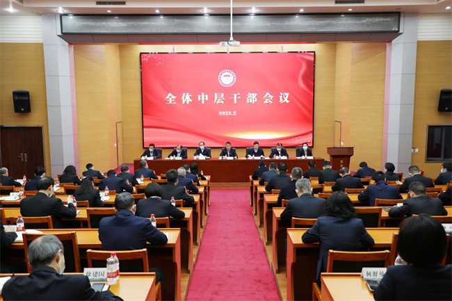 黨委書(shū)記楊義波在講話中,從十個(gè)方面歸納了春節(jié)調(diào)休期間工作主要成績(jī),也指出了目前管理中存在的不足。他表示,今年是全面貫徹落實(shí)黨的二十大精神開(kāi)局之年,也是實(shí)施“十四五”規(guī)劃承上啟下的關(guān)鍵一年,是河南省“雙高”院校、提質(zhì)培優(yōu)行動(dòng)計(jì)劃沖刺驗(yàn)收之年,是總結(jié)建校90周年發(fā)展成果開(kāi)啟電力職業(yè)教育發(fā)展新篇章的開(kāi)局之年。全體干部一要以全新姿態(tài),發(fā)揚(yáng)斗爭(zhēng)精神,投入到新學(xué)期工作中去。要以持之以恒,堅(jiān)韌不拔的狀態(tài),“拉滿弓上滿弦”,敢于直面困難,敢于較真碰硬,敢于盡職盡責(zé),敢于善做善成,全力以赴做好各項(xiàng)工作。二要壓實(shí)責(zé)任,全力以赴做好新學(xué)期各項(xiàng)工作。要以貫徹落實(shí)黨的二十大精神為主線,以更寬廣的視野理解責(zé)任擔(dān)當(dāng),把握部門(mén)定位與個(gè)人職責(zé),謀劃好新學(xué)期的工作,做到思想就位、狀態(tài)回位、工作到位。三要堅(jiān)定信心,風(fēng)雨無(wú)阻,向著學(xué)校“兩大目標(biāo)”闊步前行。全體中層干部要深刻認(rèn)識(shí)學(xué)校當(dāng)前面臨的新形勢(shì)、新機(jī)遇、新挑戰(zhàn),增強(qiáng)大局意識(shí),強(qiáng)調(diào)“部署”和“見(jiàn)效”,以強(qiáng)烈的責(zé)任感和使命感,為實(shí)現(xiàn)學(xué)校沖刺國(guó)家級(jí)“雙高”院校和發(fā)展本科層次職業(yè)教育兩大目標(biāo),貢獻(xiàn)自己的力量。