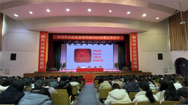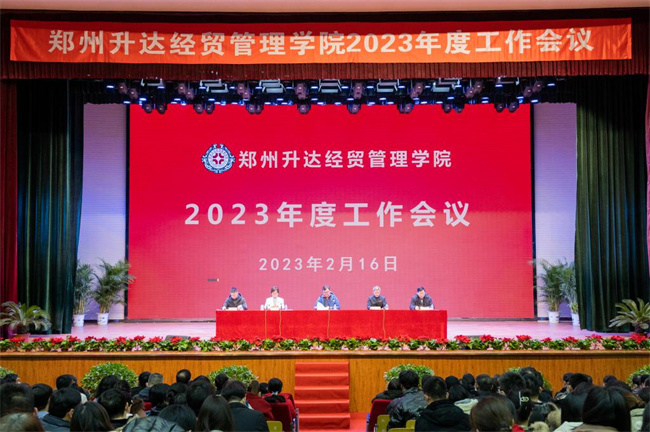 伴隨著雄壯的國歌聲,大會(huì)拉開了序幕。張欣作題為《邁向新征程 再鑄新輝煌 以優(yōu)異成績向建校30周年獻(xiàn)禮》工作報(bào)告。她首先代表學(xué)校向寒假堅(jiān)守在工作崗位的各位同仁表示衷心的感謝和崇高的敬意!向新入職的同仁表示熱烈的歡迎。報(bào)告回顧了剛剛過去的2022年,這極不平凡的一年,全體升達(dá)人齊心協(xié)力、迎難而上,扛過了疫情防控多輪阻擊戰(zhàn)和遭遇戰(zhàn),取得了學(xué)生培養(yǎng)、教學(xué)改革、專業(yè)建設(shè)和教學(xué)運(yùn)行的勝利,成績顯著、亮點(diǎn)紛呈, 學(xué)校各項(xiàng)事業(yè)發(fā)展保持了平穩(wěn)態(tài)勢。報(bào)告總結(jié)了2022年度的主要工作:一、黨建科學(xué)化水平持續(xù)提升;二、學(xué)生發(fā)展態(tài)勢穩(wěn)步向好;三、教師隊(duì)伍素質(zhì)明顯提高;四、教學(xué)改革不斷深化;五、科研服務(wù)社會(huì)能力持續(xù)增強(qiáng);六、疫情防控水平顯著提高;七、綜合保障能力日益增強(qiáng)。同時(shí),報(bào)告提出2023年度的工作思路,一、深入落實(shí)黨的二十大精神;二、堅(jiān)持和加強(qiáng)黨的全面領(lǐng)導(dǎo);三、完善審核評(píng)估準(zhǔn)備工作;四、全面提高本科教育教學(xué)質(zhì)量;五、推進(jìn)學(xué)科建設(shè)和申碩工作;六、全面深化人才強(qiáng)校戰(zhàn)略;七、全面提升產(chǎn)教融合水平;八、加快登封校區(qū)建設(shè)進(jìn)度;九、辦好30周年校慶活動(dòng);十、做好校園安全穩(wěn)定工作。她希望大家,新的一年,要團(tuán)結(jié)依靠全體黨員干部和師生員工,萬眾一心、砥礪前行,靶向發(fā)力、精準(zhǔn)施策,腳踏實(shí)地、埋頭苦干,全力推動(dòng)學(xué)校事業(yè)實(shí)現(xiàn)更好更快發(fā)展。鼓足干勁再出發(fā),以新氣象、新作為、新成績向建校30周年獻(xiàn)禮。