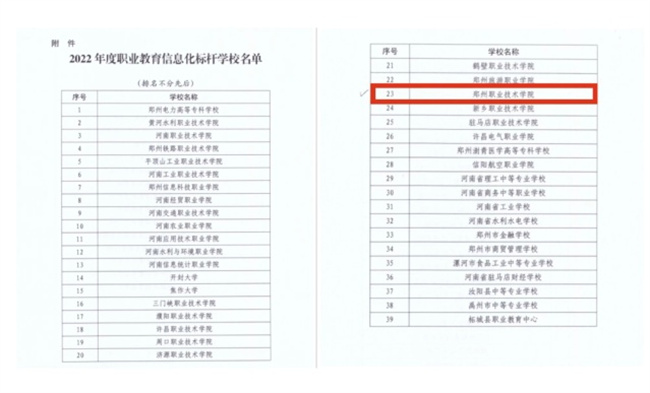 鄭州職業(yè)技術(shù)學(xué)院入選2022年度河南省職業(yè)教育信息化標(biāo)桿學(xué)校