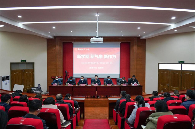 趙榴明簡要回顧了過去一年學校統(tǒng)籌疫情防控和事業(yè)發(fā)展各項工作攻堅克難、砥礪奮進、極不平凡的發(fā)展歷程,并從三個方面就如何在新學期展現(xiàn)新氣象創(chuàng)造新作為提出具體要求。一是要堅持科學的認識論,正確把握新學期的新形勢,對標新學期黨政工作要點,立足新定位,錨定新目標,鍛造新能力,追求新境界,不斷實現(xiàn)學校事業(yè)發(fā)展的新跨越。二是要堅持問題導向,貼近學生,貼近管理服務對象,提振信心,凝聚人心,開展好春季學期系列教育引導活動,以實際行動衷心擁護“兩個確立”、忠誠踐行“兩個維護”,讓青春在全面建設社會主義現(xiàn)代化國家的火熱實踐中綻放絢麗之花。三是要堅持科學的方法論,在新學期新形勢下展現(xiàn)新氣象新作為,以釘釘子精神持續(xù)抓好各項工作任務落細落實落地,繼承和發(fā)揚艱苦奮斗、自強不息的優(yōu)良辦學傳統(tǒng),賡續(xù)奮斗精神,勇?lián)熑问姑,聚焦立德樹人根本任務,在實干奉獻中創(chuàng)造非凡業(yè)績,在接續(xù)奮斗中書寫學校高質量發(fā)展新篇章。