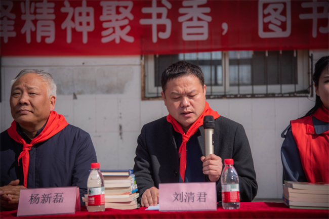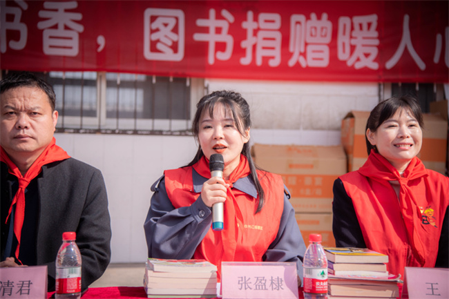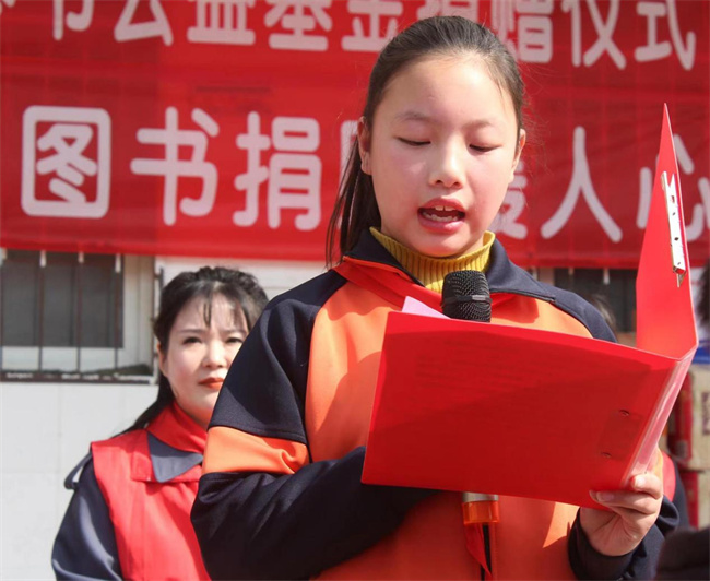 圖書捐贈(zèng)儀式在同學(xué)們?yōu)轭I(lǐng)導(dǎo)及老師們敬獻(xiàn)紅領(lǐng)巾、齊唱《學(xué)習(xí)雷鋒好榜樣》中拉開序幕,而后由應(yīng)舉鎮(zhèn)黨委副書記劉清君、一本書公益基金會(huì)代表張盈棣、商貿(mào)系學(xué)團(tuán)辦負(fù)責(zé)人王婧先后發(fā)表重要講話,領(lǐng)導(dǎo)、老師們紛紛囑托東大村的孩子們好好利用圖書資源,努力學(xué)習(xí),成為黨和國(guó)家的棟梁之才,長(zhǎng)大以后用實(shí)際行動(dòng)報(bào)效祖國(guó)。隨后,學(xué)生代表向各位領(lǐng)導(dǎo)及老師們表達(dá)誠(chéng)摯的謝意,表示定當(dāng)不負(fù)眾望,努力學(xué)習(xí),將來(lái)?yè)?dān)當(dāng)起建設(shè)祖國(guó)的重任。