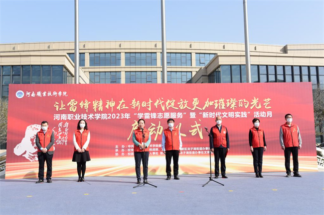 中新河南網(wǎng)3月7日電(胡艷王宜賓) 惠風(fēng)和暢,陽光明媚。今年3月5日,是第60個“學(xué)雷鋒紀(jì)念日”。當(dāng)天上午,河南職院隆重舉行2023年“學(xué)雷鋒志愿服務(wù)”暨“新時代文明實踐”活動月啟動儀式。校長梅樂堂出席儀式并作題為《讓雷鋒精神在新時代綻放更加璀璨的光芒》的“開學(xué)第一課”講話。龍子湖辦事處黨工委副書記、主任李鄭懿出席儀式并致辭。儀式由校黨委副書記、紀(jì)委書記田華主持。