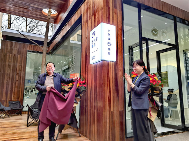 學院領導完成“出色讀”咖啡廳揭牌儀式