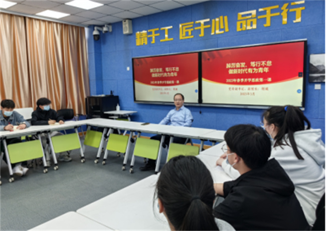 學生工作部以“擁抱新學期,啟航新征程”為主題,制定了“開學第一課”主題班會工作方案,明確活動安排,并統(tǒng)一制作了學工人員培訓材料和活動課件,黨委宣傳部、學工部、思政部共同審核把關。各學院積極配合,組織班主任開展培訓指導,確保“開學第一課”高質量實施。主題班會從學生日常管理、安全教育、健康防護教育、心理健康教育、資助政策宣貫、二十大精神學習等方面為同學們上了生動一課,并通過座談會的形式組織同學們“寒假歸來話收獲”,一起分享自己假期的感悟和收獲。