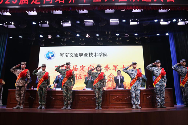 中新河南網(wǎng)3月16日電(趙攀科) 近日,河南交通職業(yè)技術(shù)學(xué)院在航海路校區(qū)舉行儀式,歡送2023屆定向培養(yǎng)軍士光榮入伍。河南省征兵辦公室主任、省軍區(qū)動(dòng)員局大校局長姜巍、河南省教育廳二級巡視員秦劍臣、鄭州警備區(qū)動(dòng)員處參謀陳杰、鄭州二七區(qū)人武部部長梁江濤、校黨委書記劉志偉出席大會(huì)。校長焦宏濤主持大會(huì)。