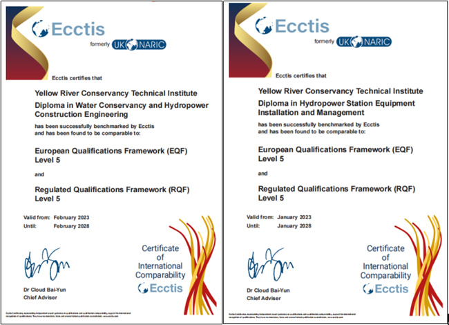 中新河南網(wǎng)3月17日電 近日,黃河水利職業(yè)技術(shù)學(xué)院“水電站設(shè)備安裝與管理”和“水利水電建筑工程”兩個(gè)專(zhuān)業(yè)正式通過(guò)英國(guó)國(guó)家學(xué)歷學(xué)位評(píng)估認(rèn)證中心(UK ENIC)國(guó)際專(zhuān)業(yè)標(biāo)準(zhǔn)評(píng)估認(rèn)證,取得UK ENIC國(guó)際質(zhì)量標(biāo)準(zhǔn)證書(shū)和國(guó)際可比性證書(shū),學(xué)校的政策與程序符合國(guó)際質(zhì)量標(biāo)準(zhǔn),專(zhuān)業(yè)達(dá)到了英國(guó)資歷框架(RQF)和歐洲資歷框架(EQF)5級(jí)水平。