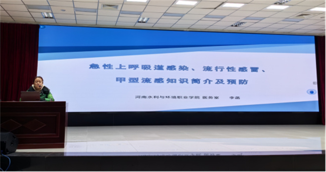 專題講座在學校航空港校區(qū)德禮講堂進行,學校醫(yī)務室醫(yī)生張少嚴和李菡主講,航空港校區(qū)管委會主任楊慧麗主持,并以視頻形式在花園路校區(qū)、信陽校區(qū)同時進行。講座中,張少嚴從結核病的基本知識、傳播途徑、危害及防控措施等方面向師生講解了結核病相關知識,提醒大家要增強自我保健意識,提高防控結核病能力,樹立傳染病預防理念。李菡就近期“甲流”流行情況和春季呼吸道疾病防控做了簡明概述。楊慧麗在總結講話中,倡導同學門要在校園內(nèi)廣泛宣傳講座內(nèi)容,成為結核病預防和杜絕傳染病在校園內(nèi)傳播的倡導者、行動者、推動者,做好自身健康的第一責任人。整場講座生動精煉、簡明易懂,有利于師生掌握呼吸系統(tǒng)疾病防治知識和技能。