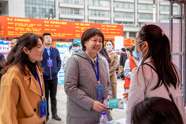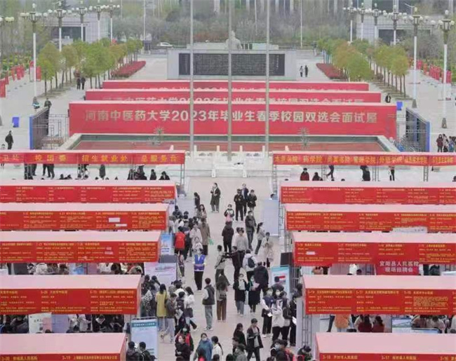 中新河南網(wǎng)3月27日電(趙云 秦東仁 賴偉鵬 聶永強(qiáng)) 3月25日,河南中醫(yī)藥大學(xué)2023年畢業(yè)生春季校園雙選會(huì)在校龍子湖校區(qū)五星廣場如期舉行。校黨委書記李小芳,校紀(jì)委書記、監(jiān)察專員王少玉,副校長田力、苗明三到會(huì)指導(dǎo)。學(xué)校招生就業(yè)處及其他相關(guān)職能部門、學(xué)院、書院負(fù)責(zé)人、畢業(yè)班輔導(dǎo)員全程參與,5000余名畢業(yè)生參加了雙選會(huì)。
