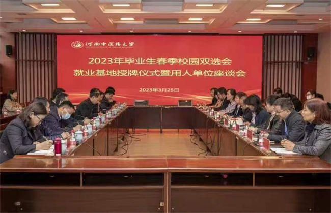 上午10:00,在圖書館第二報(bào)告廳,校領(lǐng)導(dǎo),招生就業(yè)處、教務(wù)處、學(xué)工部、研工部及各學(xué)院、書院負(fù)責(zé)人與來自省內(nèi)外的上海中醫(yī)藥大學(xué)附屬龍華醫(yī)院等10家用人單位圍繞用人單位需求、人才培養(yǎng)、如何提高畢業(yè)生就業(yè)競爭力等內(nèi)容進(jìn)行了座談。會(huì)上,李小芳對(duì)各用人單位代表的到訪表示熱烈歡迎,她詳細(xì)介紹了學(xué)校發(fā)展情況、2023屆畢業(yè)生情況、學(xué)校在就業(yè)方面所做的工作等,對(duì)各用人單位對(duì)學(xué)校畢業(yè)生的就業(yè)支持給予了充分肯定,并就人才需求、校企聯(lián)合培養(yǎng)模式和提高畢業(yè)生競爭力等問題與用人單位代表充分交換了意見。與會(huì)代表各抒己見,并對(duì)學(xué)校推動(dòng)中醫(yī)藥事業(yè)發(fā)展所做出的貢獻(xiàn)表示了感謝。隨后,校領(lǐng)導(dǎo)分別與用人單位參會(huì)代表簽訂畢業(yè)生就業(yè)基地協(xié)議書,并進(jìn)行了就業(yè)基地授牌儀式。