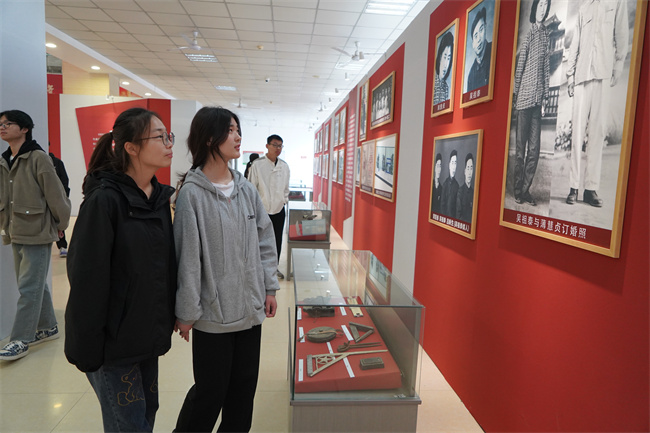 活動中,與會領導、嘉賓與該校師生一同參觀了吳祖泰事跡展,之后又以“學習吳祖泰事跡 弘揚紅旗渠精神”為主題進行了座談。