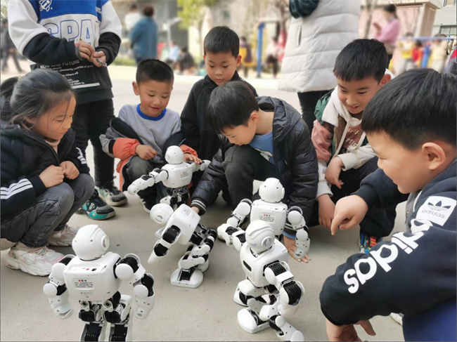 “把職業(yè)技能和志愿服務(wù)結(jié)合起來,讓時尚科技飛到尋常百姓家,這也是‘紅小匠’志愿者學(xué)以致用的看家本領(lǐng)。”智能工程學(xué)院黨總支副書記劉春鵬說,我們每年都會組織開展技能志愿服務(wù)活動,為少年兒童埋下“科技夢”的種子。今年3月5日,“紅小匠”志愿服務(wù)隊身著紅馬甲,手提機器人,再次走進新鄭市龍湖鎮(zhèn)東張寨文化活動廣場,上演了一場別開生面的“機器人”表演秀。在活動現(xiàn)場,隨著音樂響起,志愿者操控機器人做出多種高難度動作,一會兒翩翩起舞,一會兒亭亭玉立,引來不少小朋友凝神注視。“紅小匠”志愿者用知識和技能為小朋友們送去了科技與歡樂。