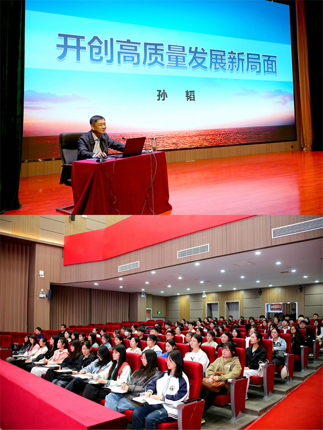 孫韜以黨的二十大報告中“加快構建新發(fā)展格局,著力推動高質量發(fā)展”為主題,從“高質量發(fā)展是關系全局的首要任務”“高質量發(fā)展深刻豐富的內涵要求”“著力推動高質量發(fā)展的戰(zhàn)略部署”和“職業(yè)教育高質量發(fā)展助推經(jīng)濟社會高質量發(fā)展”等四個方面,圍繞“如何開創(chuàng)高質量發(fā)展新局面”這一核心內容進行了深入講解。