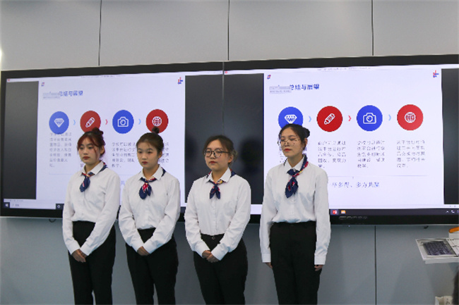 開幕式結束后,進入決賽的十支隊伍按照抽簽順序依次進入104競賽室展開激烈的角逐,F(xiàn)場各隊伍以飽滿的精神展示團隊風采,針對評委提出的問題,給予高效率高質量的回答。