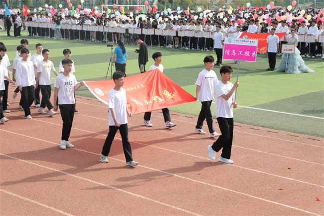 李廣慧致開幕辭,對(duì)運(yùn)動(dòng)會(huì)的召開表示熱烈的祝賀,向運(yùn)動(dòng)會(huì)所有工作人員、全體運(yùn)動(dòng)員和全體教職工表示衷心的感謝和誠(chéng)摯的問候。他指出,學(xué)校全面貫徹黨的教育方針,落實(shí)立德樹人根本任務(wù),堅(jiān)持“德智體美勞”五育并舉,把師生健康放在首要位置。本次春季運(yùn)動(dòng)會(huì)是對(duì)全校師生精神面貌、體育競(jìng)技水平和班級(jí)文化的一次全面檢閱,是同學(xué)們實(shí)現(xiàn)自主發(fā)展、展示個(gè)性特長(zhǎng)的一個(gè)平臺(tái),希望全體運(yùn)動(dòng)員充分發(fā)揚(yáng)體育精神,頑強(qiáng)拼搏,勇于進(jìn)取,賽出水平,服從裁判,尊重對(duì)手,賽出風(fēng)格;觀賽學(xué)生要積極發(fā)揚(yáng)奉獻(xiàn)精神,樹立服務(wù)意識(shí),為班級(jí)運(yùn)動(dòng)員做好后勤保障,為比賽加油鼓勁;全體裁判員和工作人員要公正評(píng)判,優(yōu)質(zhì)高效完成各項(xiàng)工作,把此次運(yùn)動(dòng)會(huì)辦成緊張有序、團(tuán)結(jié)高效的盛會(huì)。希望全校上下以此次運(yùn)動(dòng)會(huì)為契機(jī),充分弘揚(yáng)中華體育精神,在運(yùn)動(dòng)中感受快樂、在鍛煉中收獲健康、在不斷突破自我中歷練堅(jiān)強(qiáng)的意志力,時(shí)刻以?shī)^斗者的姿態(tài),主動(dòng)樹一流、積極爭(zhēng)一流、努力創(chuàng)一流,為高標(biāo)準(zhǔn)建設(shè)現(xiàn)代化水環(huán)學(xué)院貢獻(xiàn)一份力量。