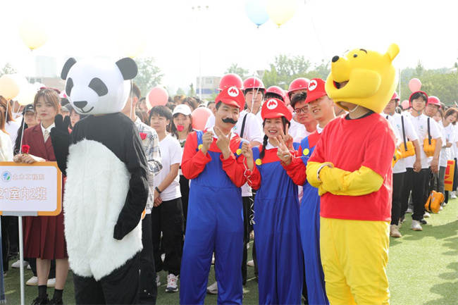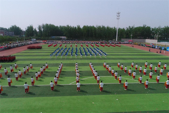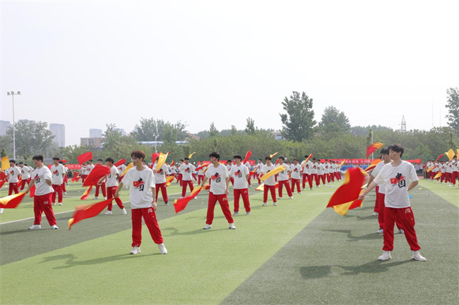 42名教職工化身運(yùn)動(dòng)健將,表演了第九套廣播體操,展示了力量與美感,體現(xiàn)了學(xué)校教職工拼搏進(jìn)取、團(tuán)結(jié)一致的向上精神。由484名學(xué)生帶來的“體育+團(tuán)學(xué)教育活動(dòng)展示”原創(chuàng)節(jié)目,融合健美操、武術(shù)等表演形式,從“開創(chuàng)未來”、“青春活力”、“精忠報(bào)國(guó)”三個(gè)篇章,展現(xiàn)了水環(huán)學(xué)子們“報(bào)效祖國(guó),一生所向”的家國(guó)情懷和“齊心協(xié)力,砥礪奮進(jìn)”的團(tuán)結(jié)精神,成為開幕式的一大亮點(diǎn)。