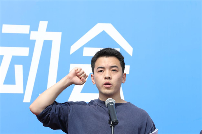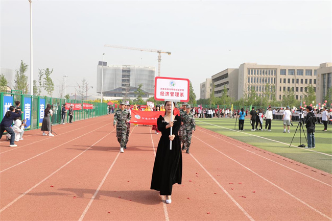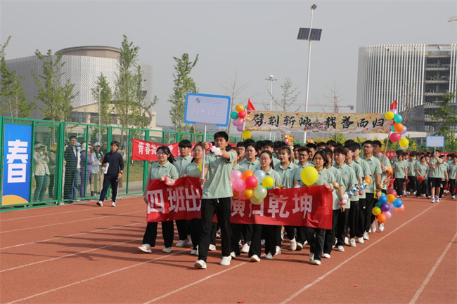 李廣慧致開幕辭,對運動會的召開表示熱烈的祝賀,向運動會所有工作人員、全體運動員和全體教職工表示衷心的感謝和誠摯的問候。他指出,學校全面貫徹黨的教育方針,落實立德樹人根本任務(wù),堅持“德智體美勞”五育并舉,把師生健康放在首要位置。本次春季運動會是對全校師生精神面貌、體育競技水平和班級文化的一次全面檢閱,是同學們實現(xiàn)自主發(fā)展、展示個性特長的一個平臺,希望全體運動員充分發(fā)揚體育精神,頑強拼搏,勇于進取,賽出水平,服從裁判,尊重對手,賽出風格;觀賽學生要積極發(fā)揚奉獻精神,樹立服務(wù)意識,為班級運動員做好后勤保障,為比賽加油鼓勁;全體裁判員和工作人員要公正評判,優(yōu)質(zhì)高效完成各項工作,把此次運動會辦成緊張有序、團結(jié)高效的盛會。希望全校上下以此次運動會為契機,充分弘揚中華體育精神,在運動中感受快樂、在鍛煉中收獲健康、在不斷突破自我中歷練堅強的意志力,時刻以奮斗者的姿態(tài),主動樹一流、積極爭一流、努力創(chuàng)一流,為高標準建設(shè)現(xiàn)代化水環(huán)學院貢獻一份力量。