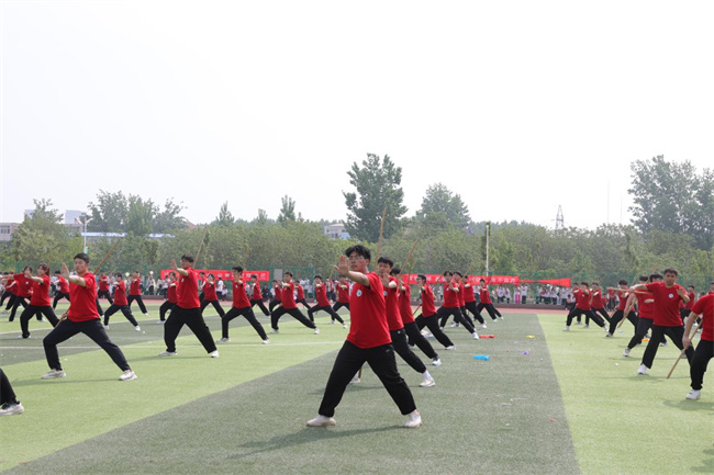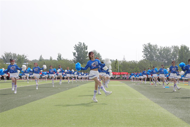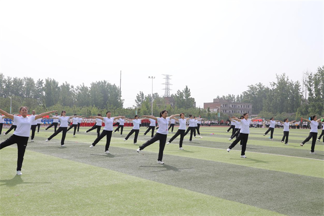 42名教職工化身運動健將,表演了第九套廣播體操,展示了力量與美感,體現(xiàn)了學校教職工拼搏進取、團結(jié)一致的向上精神。由484名學生帶來的“體育+團學教育活動展示”原創(chuàng)節(jié)目,融合健美操、武術(shù)等表演形式,從“開創(chuàng)未來”、“青春活力”、“精忠報國”三個篇章,展現(xiàn)了水環(huán)學子們“報效祖國,一生所向”的家國情懷和“齊心協(xié)力,砥礪奮進”的團結(jié)精神,成為開幕式的一大亮點。