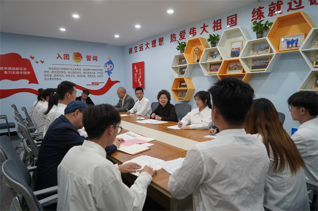 座談會(huì)前,周保平一行首先前往校團(tuán)委和各校級(jí)學(xué)生組織辦公室看望并慰問團(tuán)學(xué)干部,認(rèn)真聽取了團(tuán)學(xué)干部的工作情況匯報(bào),并結(jié)合自身經(jīng)歷進(jìn)行深入交流分享。周保平對(duì)學(xué)校共青團(tuán)工作給予充分肯定,認(rèn)為共青團(tuán)在青年學(xué)生中發(fā)揮了積極影響,工作成效顯著。她強(qiáng)調(diào),共青團(tuán)工作要體現(xiàn)青年學(xué)生朝氣蓬勃、絢爛多彩的青春特點(diǎn),要在活動(dòng)內(nèi)容、活動(dòng)場所和活動(dòng)形式上體現(xiàn)共青團(tuán)引領(lǐng)青年、帶動(dòng)青年的特點(diǎn),增強(qiáng)對(duì)青年的吸引力,鑄就青年成才夢。她勉勵(lì)大家鼓足干勁,再接再厲,推動(dòng)共青團(tuán)工作再上新臺(tái)階。周保平還向團(tuán)委青年教師送上節(jié)日的祝福。