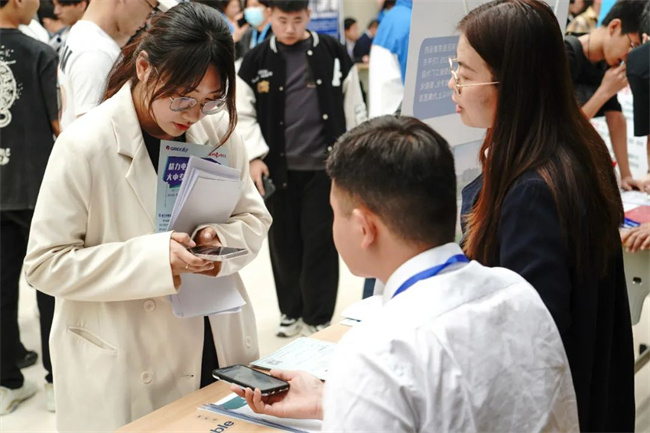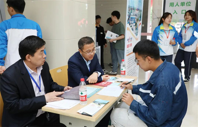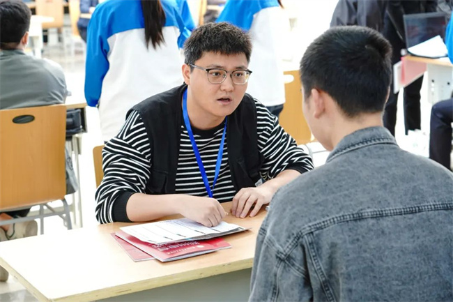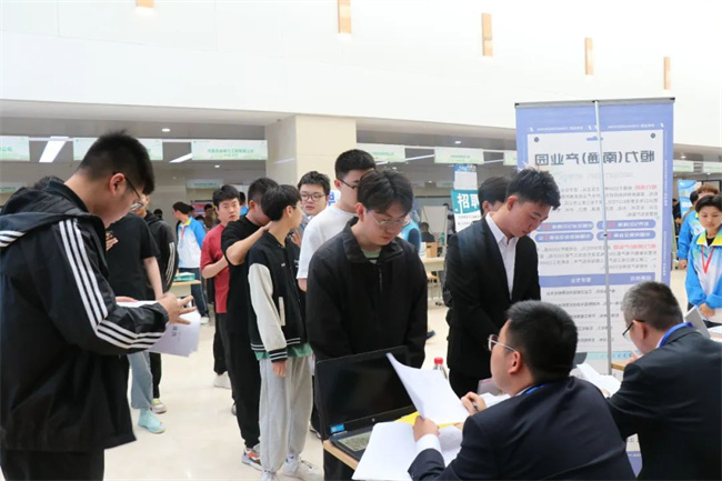 本次雙選會正值畢業(yè)季求職關鍵期、機遇窗口期,現(xiàn)場氣氛熱烈而又秩序井然,畢業(yè)生手持精心準備的求職簡歷,駐足于各招聘單位展臺,與HR積極交流,詳細咨詢用人單位及崗位具體情況。用人單位代表向畢業(yè)生拋出橄欖枝,熱情介紹公司情況、福利待遇、培訓和晉升體系,以優(yōu)厚的待遇和發(fā)展前景吸引畢業(yè)生求職應聘。學校2023屆未就業(yè)畢業(yè)生60%以上現(xiàn)場達成就業(yè)意向、20%畢業(yè)生與用人單位現(xiàn)場簽約。部分2024屆畢業(yè)生代表也到場觀摩學習,提前了解就業(yè)形勢環(huán)境、就業(yè)崗位需求、職業(yè)發(fā)展路徑、企業(yè)招聘流程等,以便為未來就業(yè)做好充分準備。