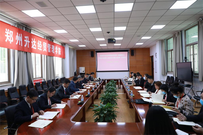 中新河南網(wǎng)5月12日電(金籽碩 王鵬豪) 5月11日下午,鄭州升達經(jīng)貿(mào)管理學(xué)院第二屆教職工代表大會暨工會會員代表大會在國際會議廳隆重召開。河南省總工會黨組成員、副主席、一級巡視員楊會卿,河南省教科文衛(wèi)體工會副主席、一級調(diào)研員鄭錦順,校執(zhí)行董事王新奇,黨委書記雷霆,黨委副書記、副校長、工會主席張金安,黨委委員、副校長張其武,全體與會代表和各基層領(lǐng)導(dǎo)、老教授及青年骨干教師代表等代表近百人出席會議。