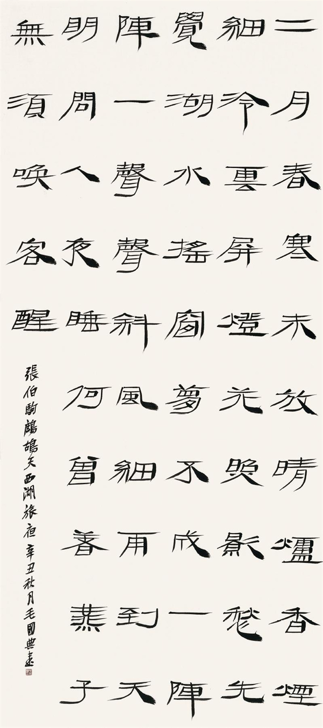 毛國典-張伯駒《鷓鴣天·西湖旅夜》180cm×79cm