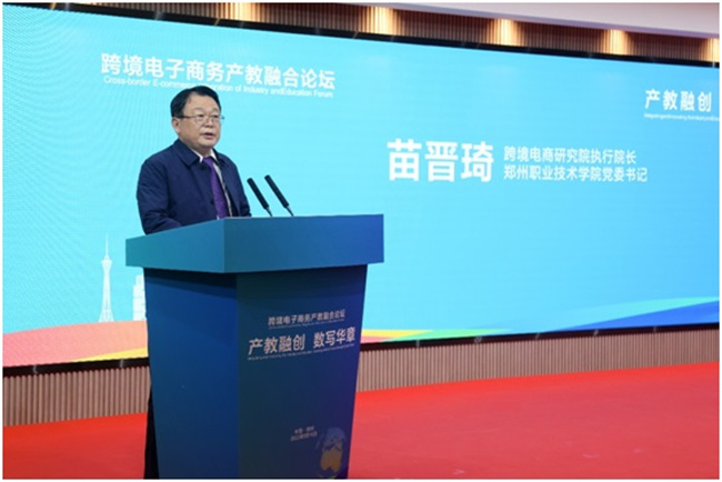 中新河南網(wǎng)5月15日電 5月10日下午,由鄭州市人民政府、河南省教育廳、河南省商務(wù)廳主辦,跨境電商研究院、中國(guó)服務(wù)貿(mào)易協(xié)會(huì)、河南國(guó)際數(shù)字貿(mào)易研究院、鄭州職業(yè)技術(shù)學(xué)院承辦的第七屆全球跨境電子商務(wù)大會(huì)平行論壇——跨境電子商務(wù)產(chǎn)教融合論壇在鄭州國(guó)際會(huì)展中心舉行。跨境電商研究院執(zhí)行院長(zhǎng)、鄭州職業(yè)技術(shù)學(xué)院黨委書記苗晉琦、鄭州職業(yè)技術(shù)學(xué)院校長(zhǎng)潘維成出席論壇并參加相關(guān)活動(dòng),論壇圍繞“產(chǎn)教融創(chuàng)、數(shù)寫華章”的主題,為跨境電商產(chǎn)教融合協(xié)同創(chuàng)新發(fā)展及人才培養(yǎng)建言獻(xiàn)策。