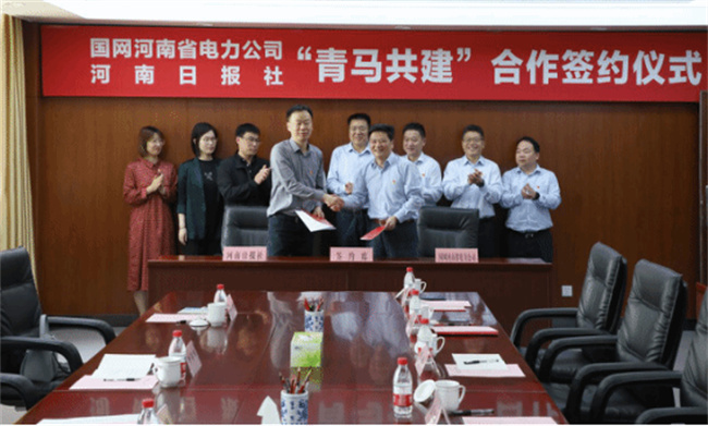 中新河南網(wǎng)5月16日電(鄭宇) 5月12日,公司與河南日?qǐng)?bào)社“青馬共建”合作簽約儀式在鄭州電力高等專(zhuān)科學(xué)校舉行。公司董事、黨委副書(shū)記安軍,河南日?qǐng)?bào)社黨委委員、副總編輯王珂代表雙方簽署協(xié)議并講話,學(xué)校黨委書(shū)記楊義波出席簽約儀式。儀式結(jié)束后,雙方代表參觀了學(xué)校黨史教育基地和公司青馬研究中心。