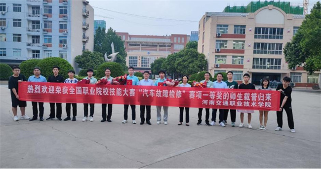 中新河南網(wǎng)5月19日電(崔源 武超) 5月14日至15日,2023年全國(guó)職業(yè)院校技能大賽高職組汽車(chē)故障檢修賽項(xiàng)在山東交通職業(yè)學(xué)院舉辦。河南交通職業(yè)技術(shù)學(xué)院參賽團(tuán)隊(duì)代表河南省高職院校從全國(guó)67支隊(duì)伍中脫穎而出,任榮和、程俊陽(yáng)兩位同學(xué)勇奪大賽一等獎(jiǎng),王培、楊濤兩位教師喜獲優(yōu)秀指導(dǎo)教師獎(jiǎng),實(shí)現(xiàn)了近幾年該校全國(guó)職業(yè)院校技能大賽一等獎(jiǎng)零的突破。