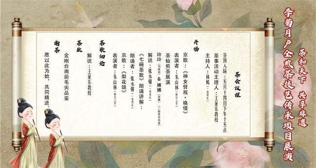 盧仝煎茶技藝傳承項(xiàng)目組將在5月14日舉辦首次展演,把首場(chǎng)展演選在母親節(jié),是飲水思源,向盧仝煎茶技藝傳承的拓荒者李菊月老師致敬之意。盧仝的《七碗茶歌》在中國(guó)茶文化史上留下了濃墨重彩的一筆。唐、宋、元、明、清時(shí)期三百多首詩篇與盧仝有關(guān)。