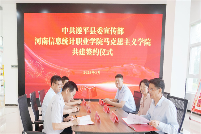 簽訂共建協(xié)議,拓展教育陣地。在遂平縣新時(shí)代文明實(shí)踐中心,河南信息統(tǒng)計(jì)職業(yè)學(xué)院馬克思主義學(xué)院與遂平縣委宣傳部舉行共建馬克思主義學(xué)院簽約儀式和“馬克思主義學(xué)院研修基地”掛牌儀式,并捐贈(zèng)圖書300余冊(cè)。劉露霞表示,此次合作共建本著相互學(xué)習(xí)、取長(zhǎng)補(bǔ)短、共享共建、一體推進(jìn)的原則,推動(dòng)雙方在黨建與思想政治工作、課程建設(shè)、教學(xué)改革、隊(duì)伍建設(shè)、科學(xué)研究等方面取得進(jìn)步,合力構(gòu)建“資源共享、優(yōu)勢(shì)互補(bǔ)、協(xié)同配合、共同提高”的思政課建設(shè)新格局,推進(jìn)校地協(xié)同育人共同體建設(shè)。